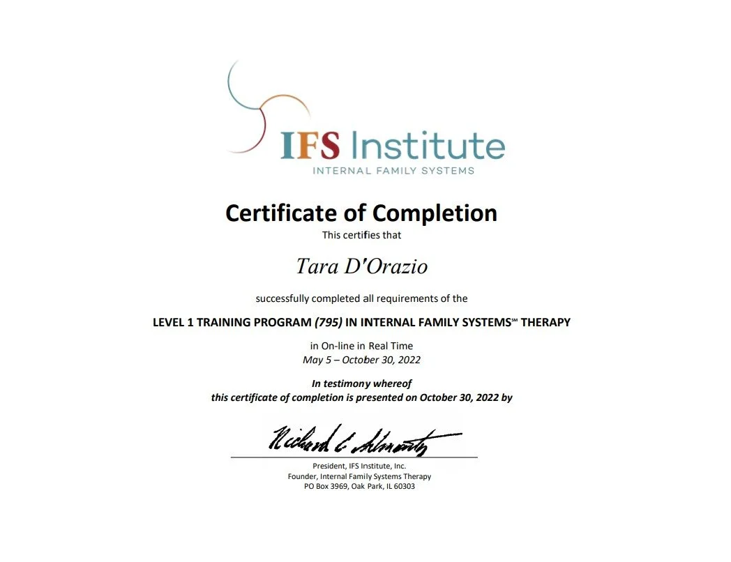 May 8, 2022 - I have started IFS Level 1 training through the IFS Institute